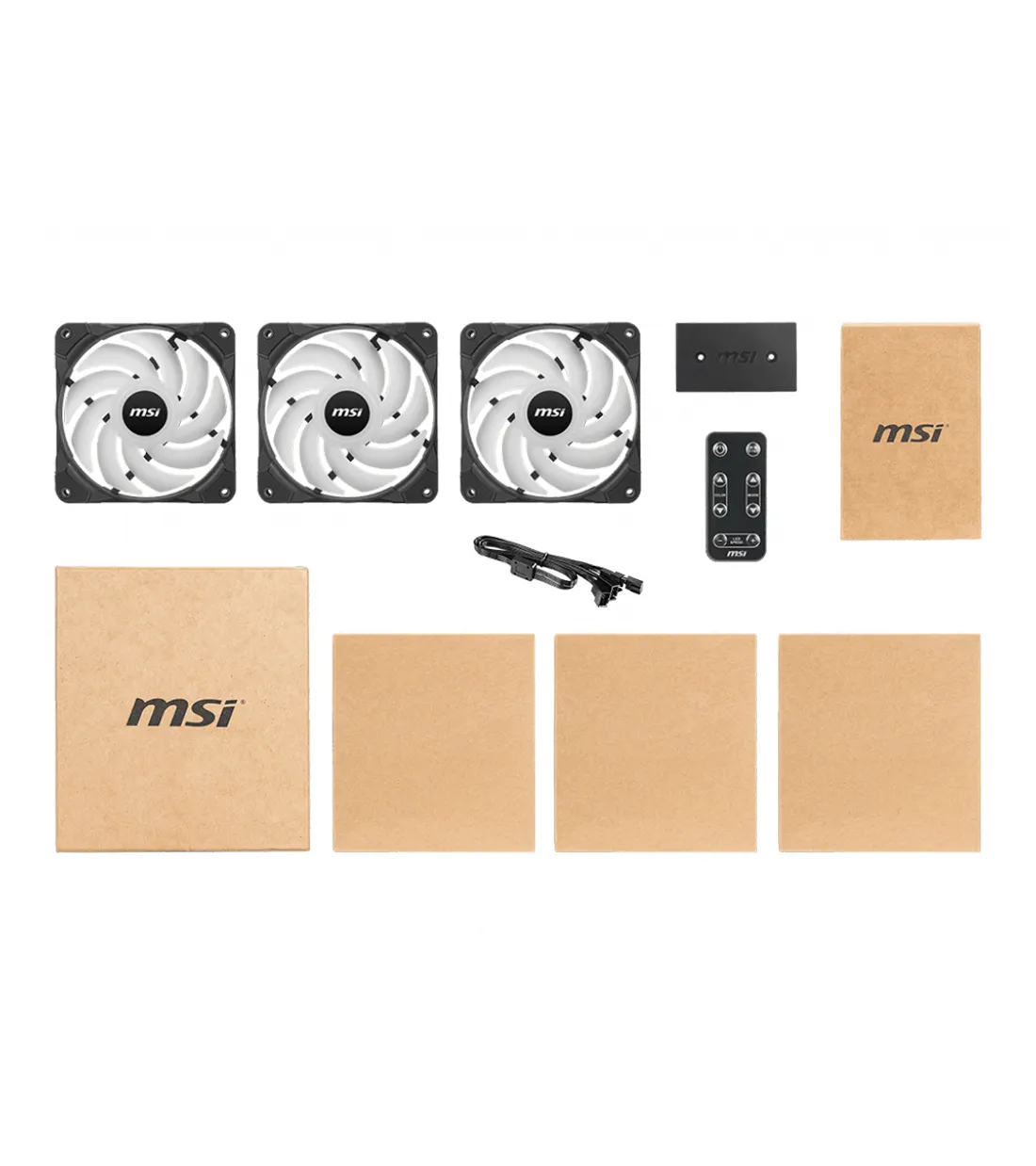 فن کیس MSI MAG MAX F12A‑3H یک مجموعه کامل شامل ۳ عدد فن ۱۲۰ میلیمتری ARGB و کنترلر اختصاصی با ریموت RF است که برای گیمرها و کاربران حرفهای طراحی شده است. بدنه هر فن از مواد مقاوم ساخته شده و پرهها با طراحی ایرودینامیک، جریان هوای قدرتمند و یکنواختی تولید میکنند. رنگبندی کلاسیک و نورپردازی ARGB باعث شده این مجموعه با هر کیس گیمینگی بهخوبی هماهنگ شود و جلوهای مدرن و لوکس به سیستم بدهد.