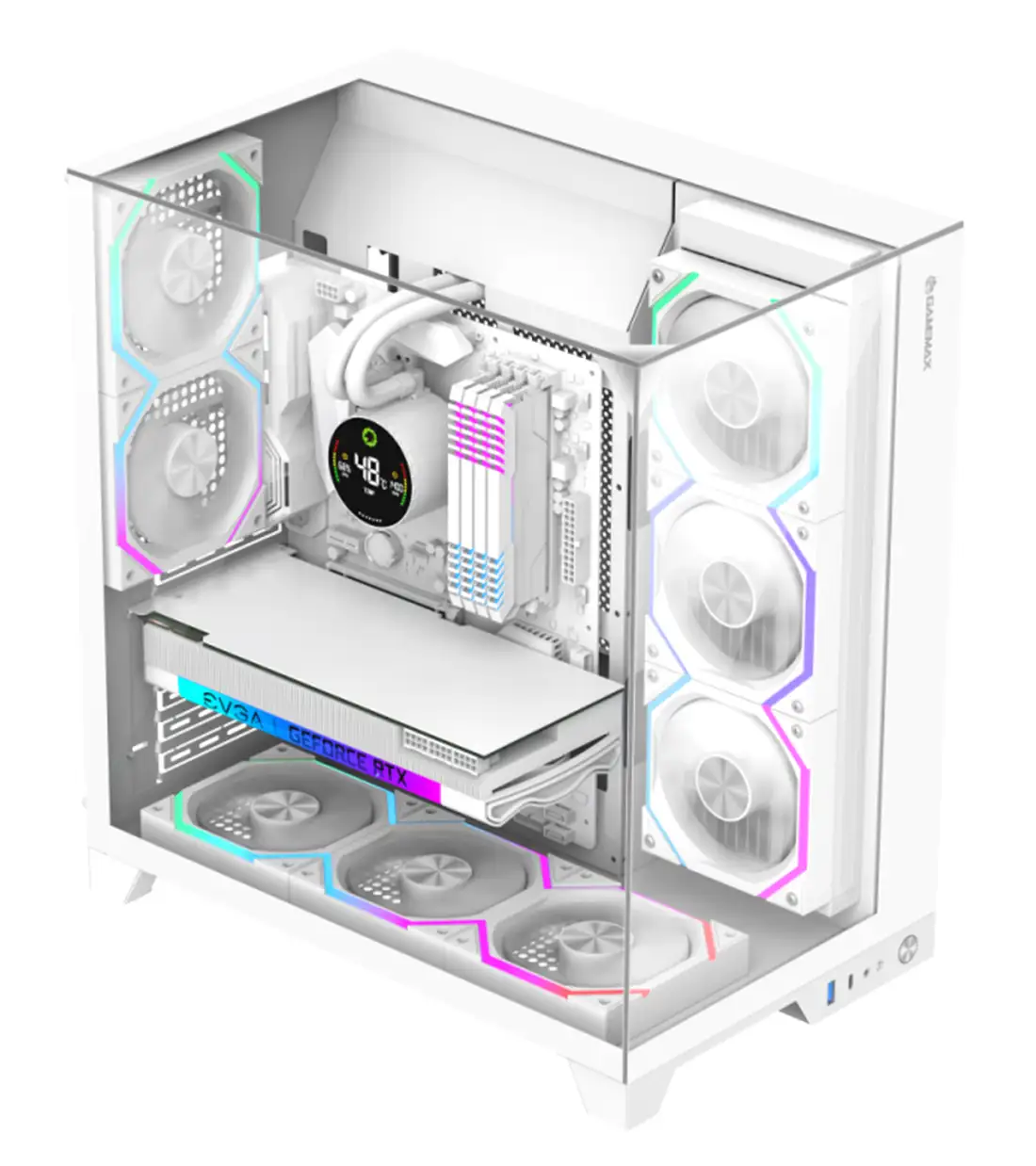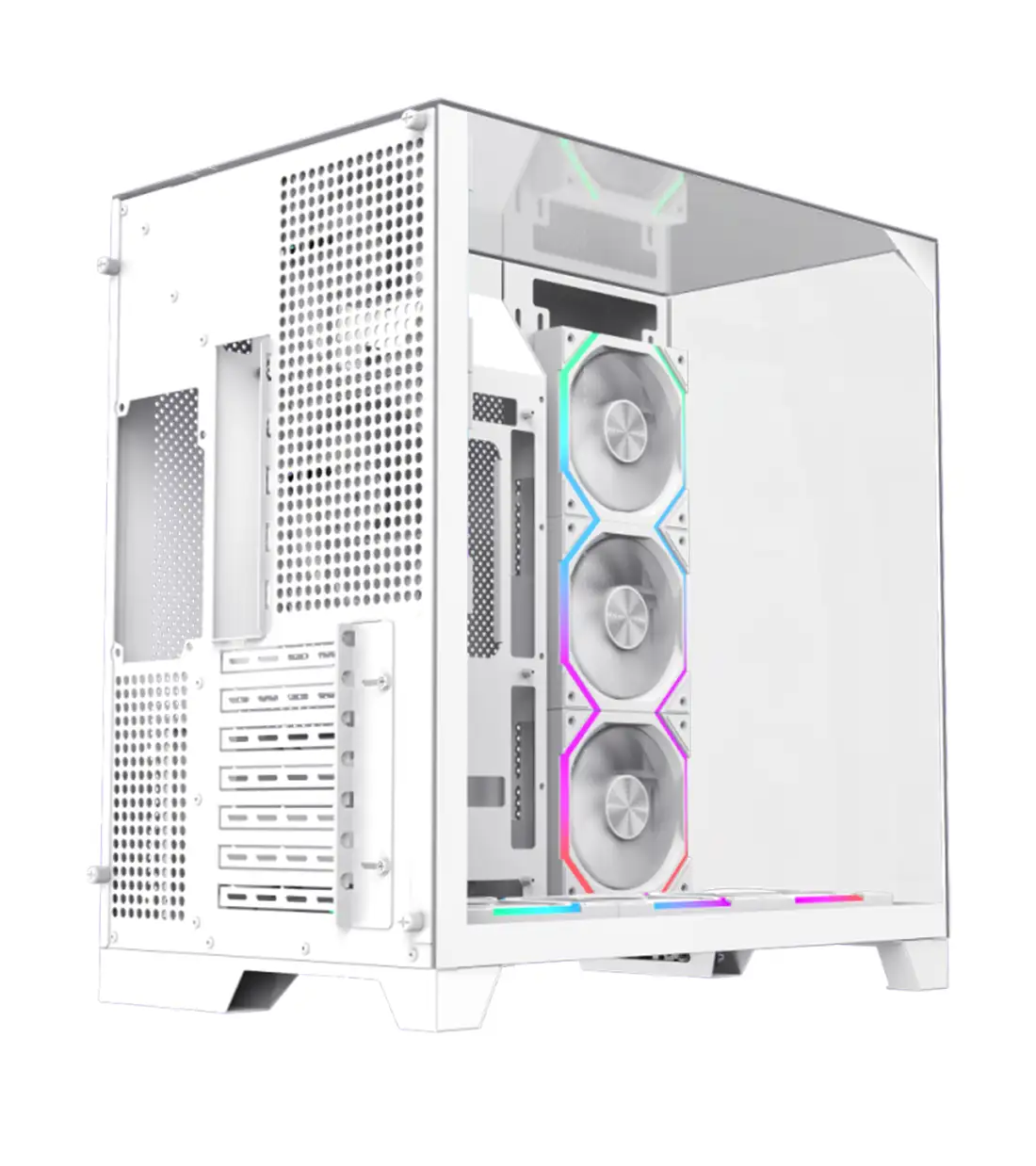 این کیس با استفاده از مواد باکیفیت و ساختار مقاوم تولید شده و پنل جلویی آن از طراحی مشبک (MESH) بهره میبرد تا جریان هوا به بهترین شکل ممکن برقرار شود. پنل کناری از شیشه حرارتدیده شفاف ساخته شده که جلوه زیبایی به اسمبل سیستم شما میدهد و باعث میشود قطعات داخلی و نورپردازی ARGB بهوضوح دیده شوند. طراحی داخلی spacious این کیس باعث میشود که بتوانید به راحتی قطعات قدرتمند و بزرگ را نصب کنید بدون اینکه با مشکل فضا مواجه شوید. کیس GameMax INFINITY PRO WHITE با فرمفاکتور Mid Tower طراحی شده و از مادربردهای E-ATX، ATX، Micro-ATX و Mini-ITX پشتیبانی میکند. این موضوع انعطافپذیری بالایی در انتخاب قطعات به شما میدهد. همچنین فضای نصب کارت گرافیک بسیار مناسب بوده و از کارتهای گرافیک با طول بالا پشتیبانی میکند. فضای کافی برای نصب خنککننده پردازندههای بزرگ نیز در نظر گرفته شده است تا گیمرها بتوانند از کولرهای حرفهای یا سیستمهای خنککننده مایع استفاده کنند. این کیس به طور پیشفرض با چندین فن ARGB باکیفیت عرضه میشود که امکان نورپردازی هماهنگ و زیبا را فراهم میکند. طراحی پنل جلو و سقف بهگونهای است که بتوانید حداکثر جریان هوا را در داخل کیس برقرار کنید. همچنین پشتیبانی از رادیاتورهای خنککننده مایع در بخش جلو و سقف کیس برای کسانی که قصد استفاده از AIO Cooler دارند فراهم شده است. در پنل جلویی کیس GameMax INFINITY PRO WHITE مجموعهای از پورتهای کاربردی شامل USB 3.0، USB 2.0 و جکهای HD Audio تعبیه شده است تا دسترسی آسان به اتصالات مورد نیاز فراهم شود. وجود دکمه کنترل نورپردازی نیز به شما اجازه میدهد تا افکتهای نوری ARGB را تنها با یک کلیک تغییر دهید و ظاهر سیستم خود را شخصیسازی کنید. اگر به دنبال یک کیس مدرن، باکیفیت و مجهز به نورپردازی ARGB هستید که علاوهبر طراحی زیبا، فضای کافی و تهویه عالی داشته باشد، کیس GameMax INFINITY PRO WHITE یکی از بهترین انتخابهای شما است. این محصول برای گیمرها و اسمبلکنندگان حرفهای که خواهان ترکیبی از عملکرد، انعطافپذیری و ظاهر چشمنواز هستند، پیشنهاد میشود.